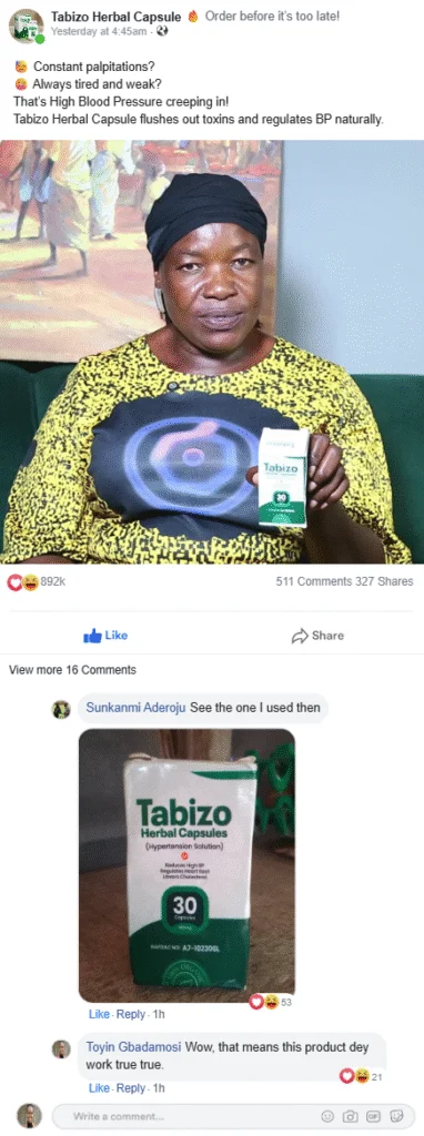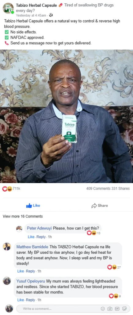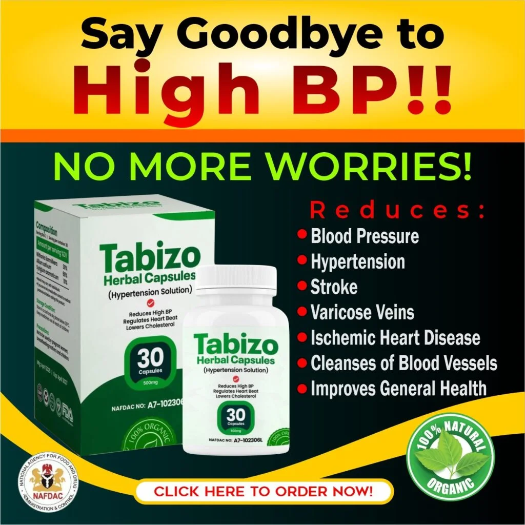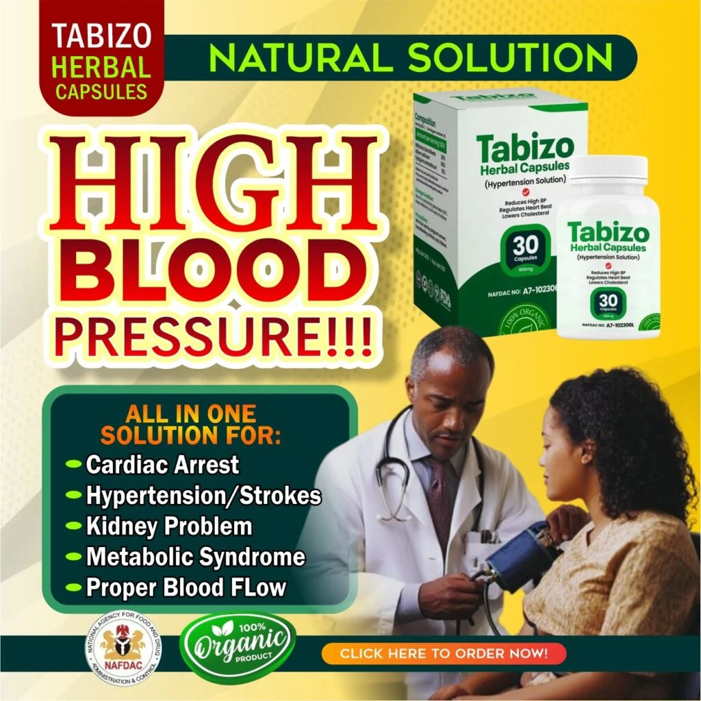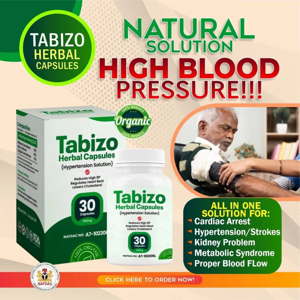THIS PRODUCT IS 100% NAFDAC APPROVED NO; A7-102306L. TABIZO HERBAL – NATURE’S ANSWER TO STUBBORN HIGH BLOOD PRESSURE